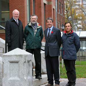 | President Tom Traves, Landscape Architect Cary Vollick, Director of Facilities Management Jeff Lamb, and Ted Migas of Facilities Management. (Pearce photo) |