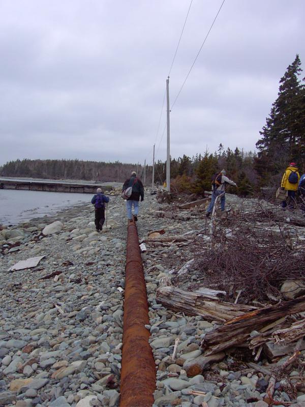 • 800f WWII oil pipe  exposed in McNabs Cove width:600;;height:800