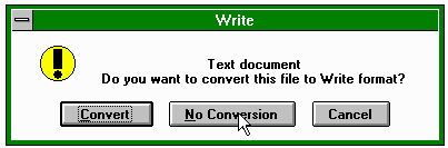 [ A picture of the mouse cursor selecting 'No Conversion'. ]