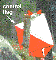 The control flag marks the spot that is circled on the map. Attached to or near the control flag are one or more punches and a card with the "control code". Each flag is assigned a unique control code, usually a two-letter combination (numbers may also be used, but international rules state that numbers 1-40 are not used for control codes). These codes allow the orienteer to determine that the control is in fact the correct one. The codes are usually listed in the clues that define the controls for each course, and many orienteers write the control codes in the corresponding boxes of the control card, to help make sure that they never punch at the wrong control or in the wrong box of the punch card. Close Window |