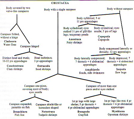 (Cladocerans [water fleas], shrimps, copepods, amphipods [scuds], sow bugs, crayfish, fish lice)