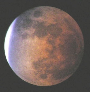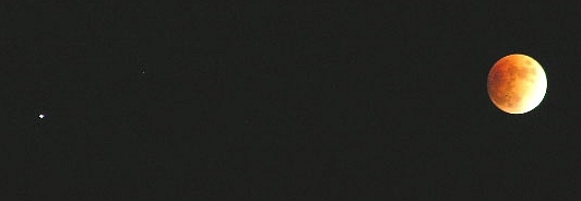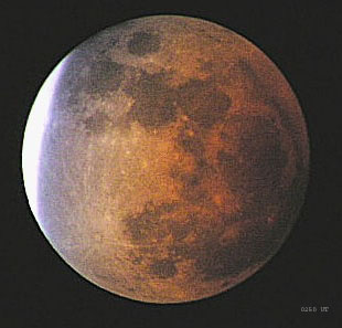 The Total Lunar Eclipse was very nice, in the imgaes before totality, note the bluish color between the bright area and the eclipsed part. Images taken with Olympus C-750 digital camera mounted over my 40mm eyepiece on the 4" f/10 refractor. I zoomed in with the camera to about 10x so that the image would fit. Images start from 0245 UT to 0306 UT. The wide angle shot was a 2 second exposure at about 20x zoom showing Saturn to the left at about 0300 UT. I took the images from my balcony in Halifax,Nova Scotia, Canada.