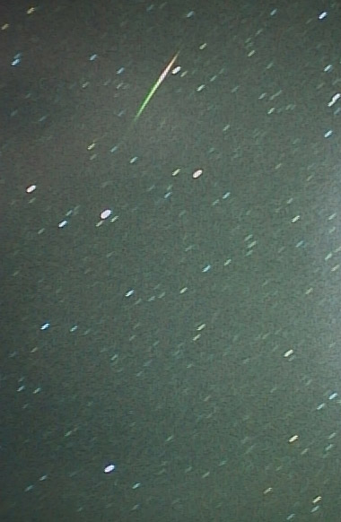 I took these photos among others of the meteor shower from our observatory at St.Croix, Nova Scotia, Canada. I used my Soviet Zenit-B camera with a 50mm f/1.7 lens and Kodak Gold 400 ASA film. Exposures varied from 30sec for the smoke trail to 5 minutes for others. Observations ran from 0600 UT to 1000 UT. A realistic estimate of the number of meteors seen at the peak near 0900 UT was 300 per hour.