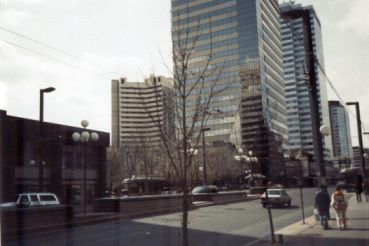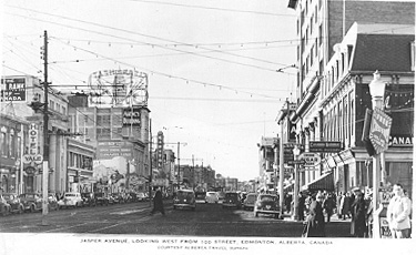 Two views of Jasper Avenue, Edmonton, circa 1950 and 2001.
