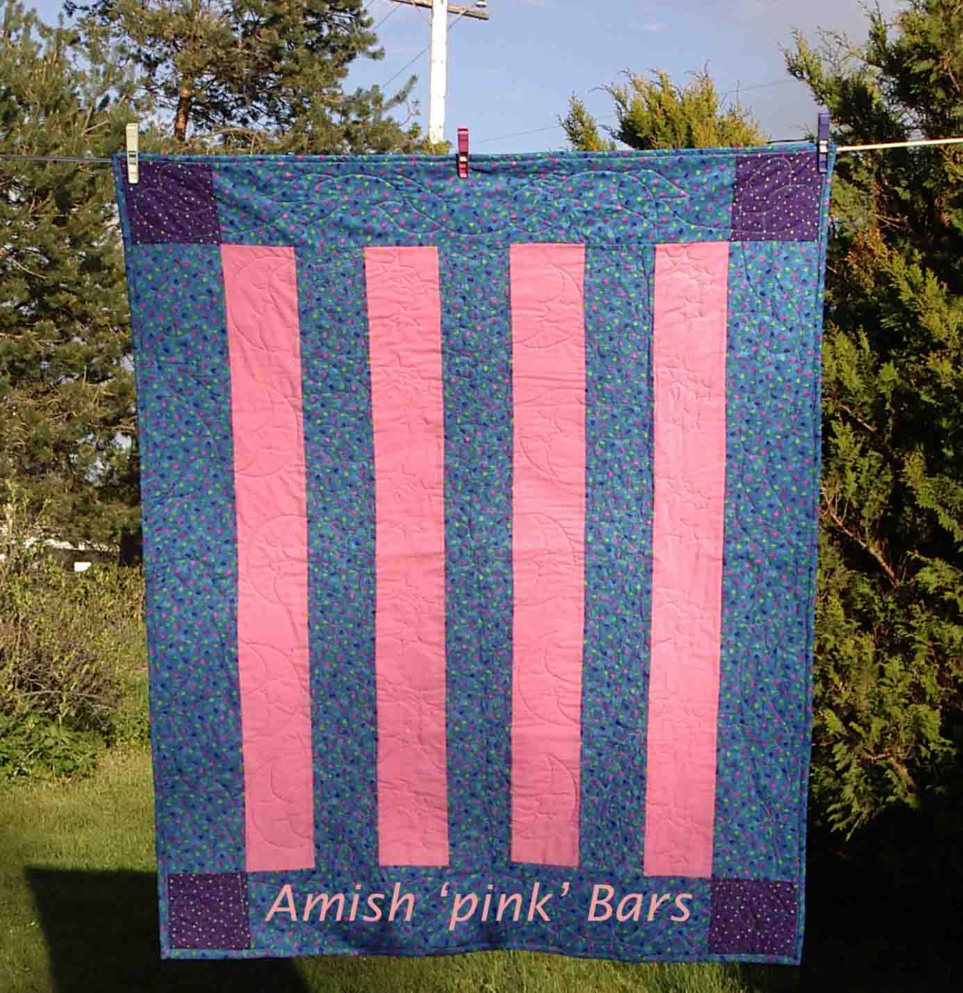 Caleb's Amish Bars - pink - is a baby quilt 38" by 46", free motion quilted. Traditional pattern.