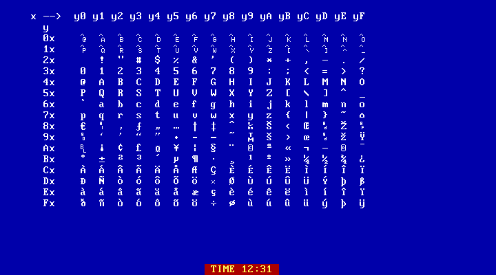 Now I have also created a rot-13 version of the VGA font so those using pine or lynx to read newspostings can shell out from TELIX (or whatever else they use) to DOS, load the "ROT13.FNT" font, exit from DOS back to TELIX (o.w.e.t.u.), and read rot-13 newspostings without having to manually decode them. Then shell out to DOS again and reload the ISO font to get back to normal. DownloadROT13.FNT as a ZIP file and try it out with: