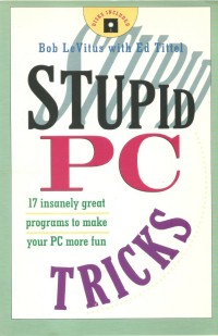 Stupid PC Tricks 1991 by Bob LeVitas with Ed Tittel ISBN: 0-201-57759-3 A short (~150-pages) book that discusses the fun shareware that appears on the enclosed floppy disc. Included in the 17 programs are ones that display fireworks, spira-graphic line drawings, thoughts of the day, or kaleidoscopic or fractal images. Also included are screen blankers, a dice game, bugel calls and other PC speaker sounds. There are even several programs designed to play screen or speaker tricks on unsuspecting friends and coworkers. The book then has a chapter on managing TSRs, and it ends with a glossary. |