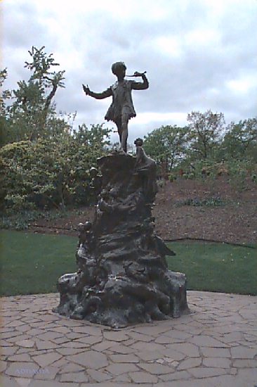 This is a statue of Peter Pan, erected in Kensington Gardens, London,